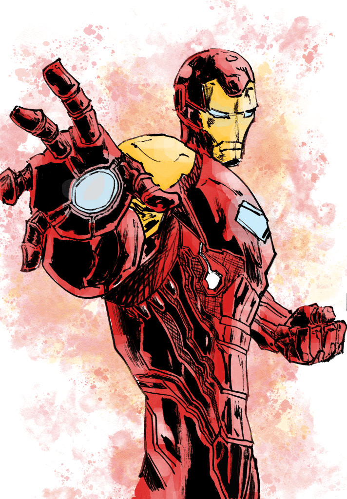 He works with idian ink and Winsor Brushes for the lineart, and watercolour for the colours.